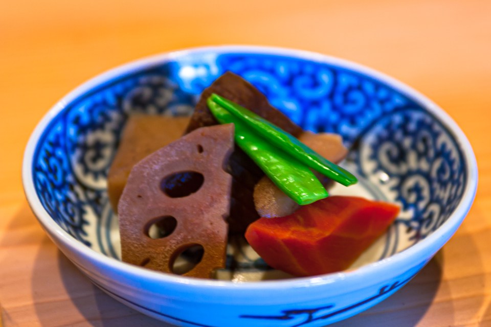 止めは,この筑前煮。れんこんがとてもおいしいです。