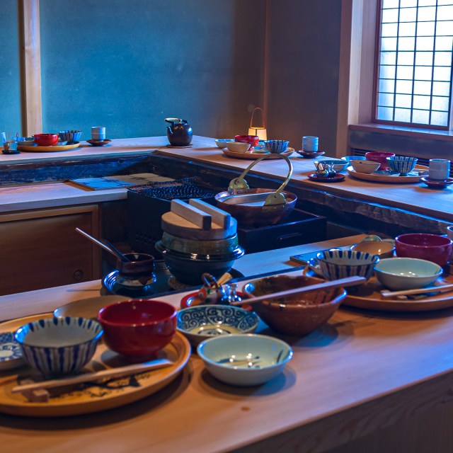コの字に囲んだカウンターです。3辺にそれぞれの部屋の人達が一同に会します。