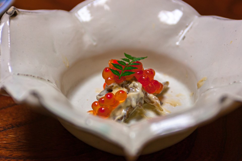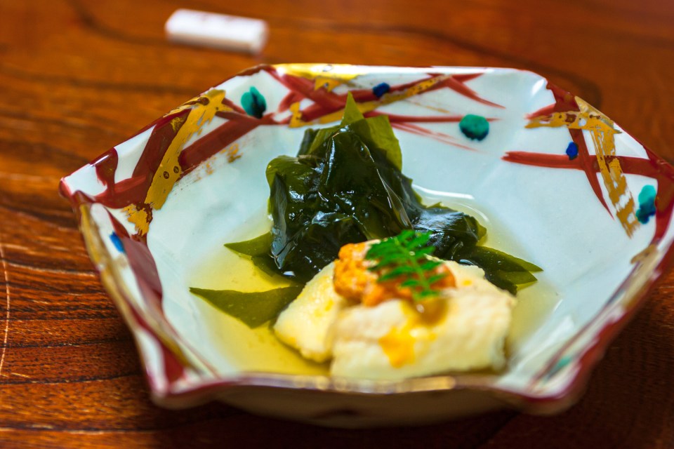 そして,烏賊の旨味だけを感じさせる塩辛。 美しい盛り付けです。