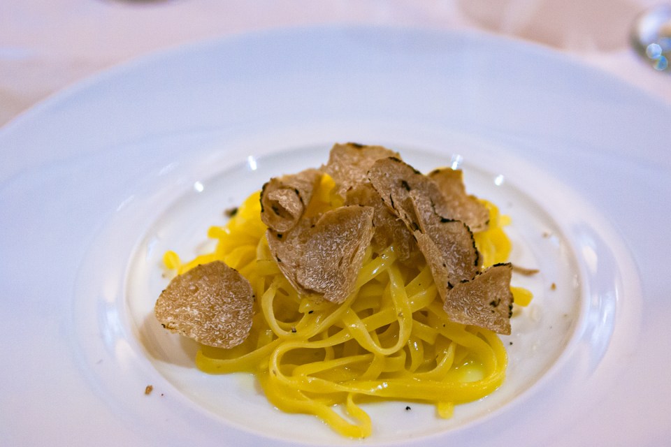 黒トリフとオリーブオイルで生パスタを和えただけですが,上質なオリーブオイルと黒トリフの合わさった香りが,最高でした。