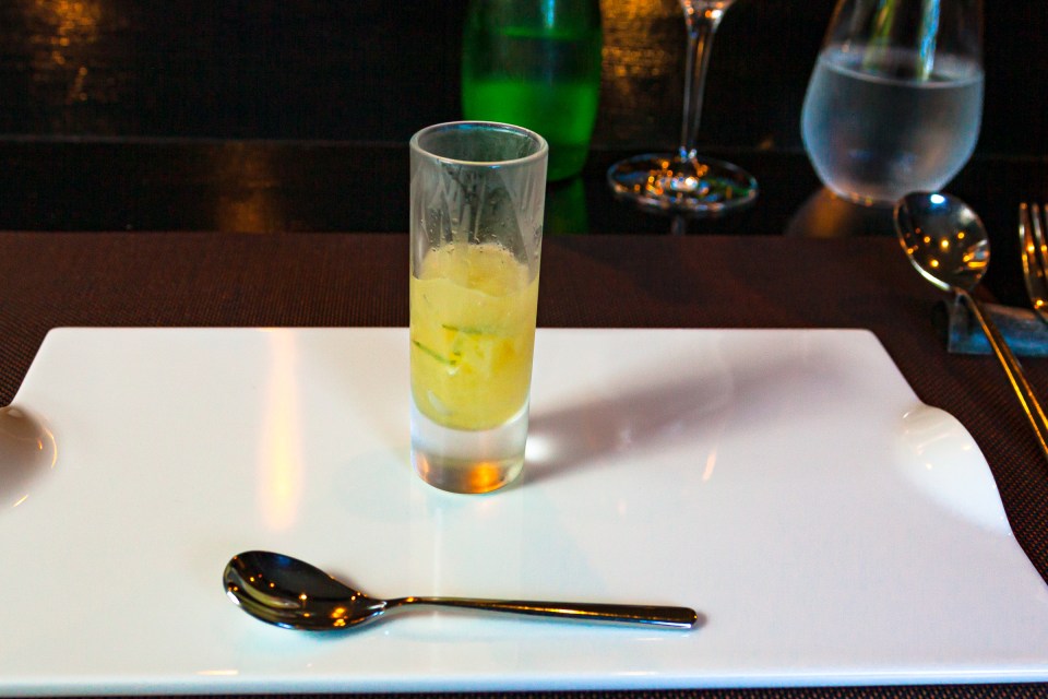 アミューズは,冷たいグレープフルーツのジュレ。