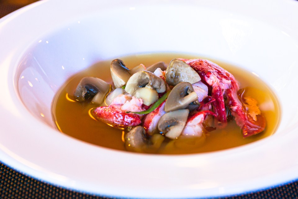 オマールがたっぷり入った,冷たいコンソメスープ。