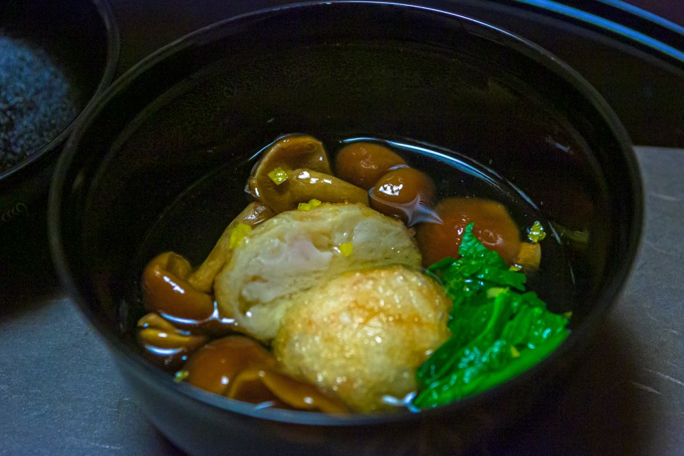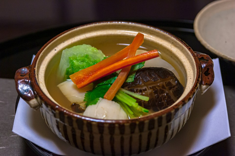 帆立と根菜の旨味が溶け込んだお出汁。とてもほっとするお味です。