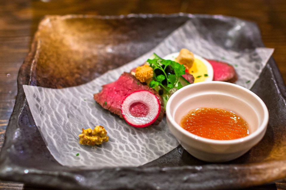 牛肉のたたき,かな。火加減が上手ですね。意外とこういった料理も上手に仕上げてくれます。