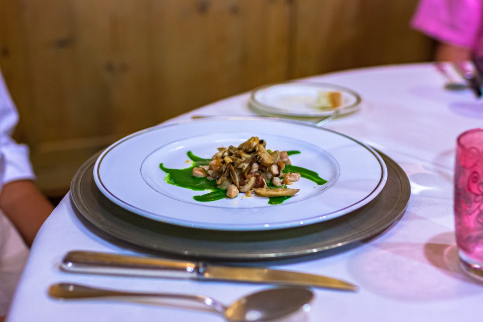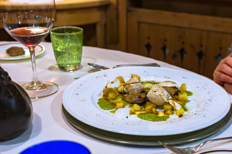 Animelle di vitello con salsa di spinaci , porcini e foie-gras affumicato