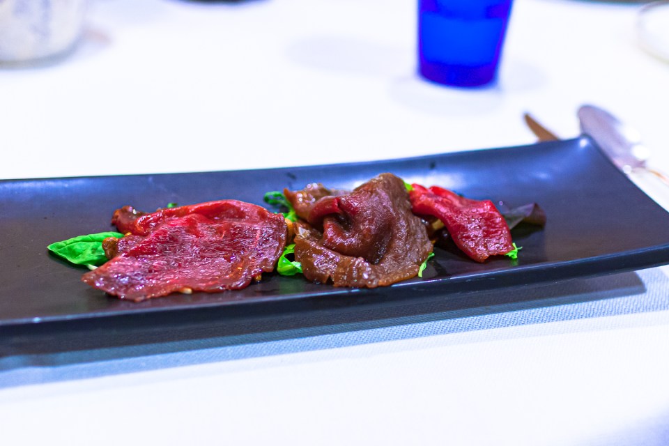 Quasi un carpaccio di cervo con gialletti sott’olio e misticanza