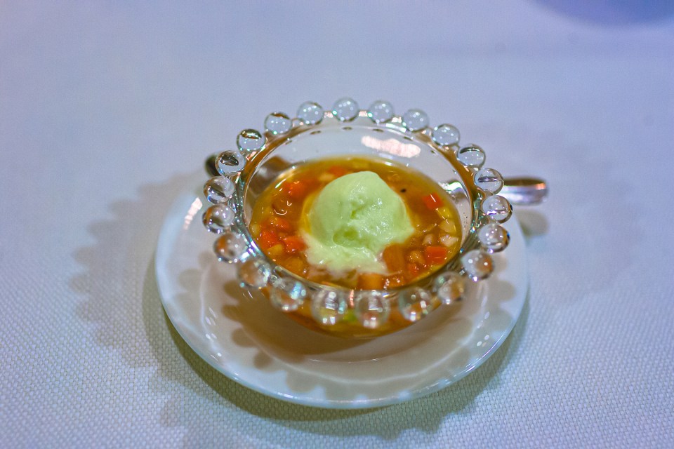Laite のシェフは女性。その為でしょうか、とても優しい色使いのセッティングです。