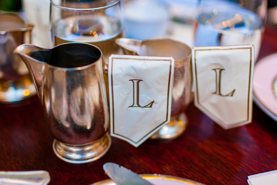銀の食器に,カフェとミルクに分かれて運ばれます。