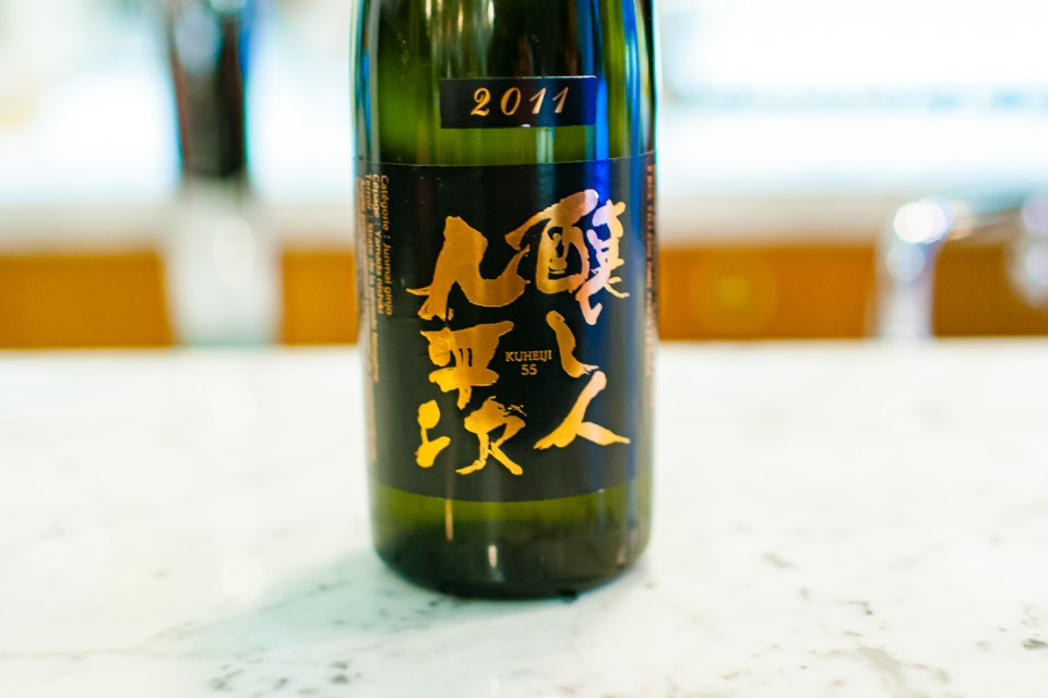帰り際に,バーカウンターで見つけた,醸し人九平次。