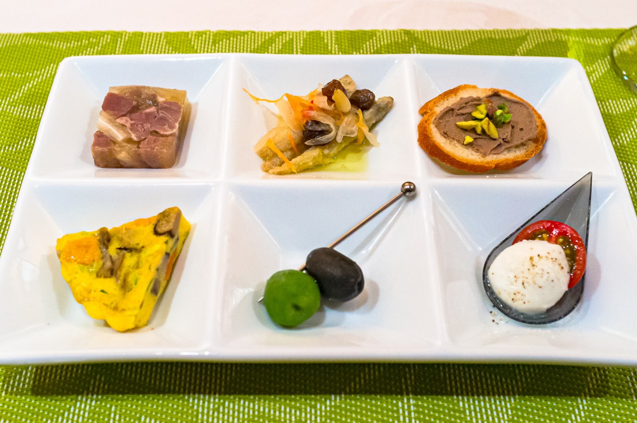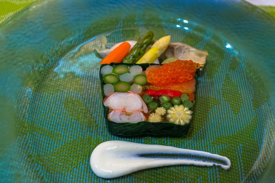前菜2皿目は,前回も出たマントーヴァの3つ星”ダル・ペスカトーレ”のスペシャリテのアレンジ版のような1皿。