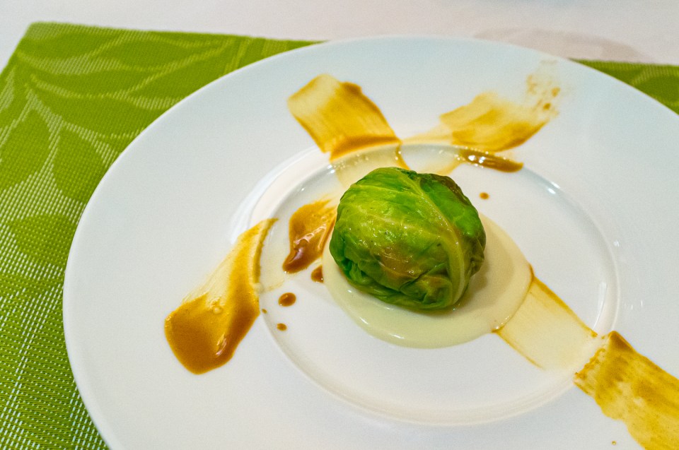 魚料理一皿目は,真鯛か何かをキャベツで包んだ一皿。