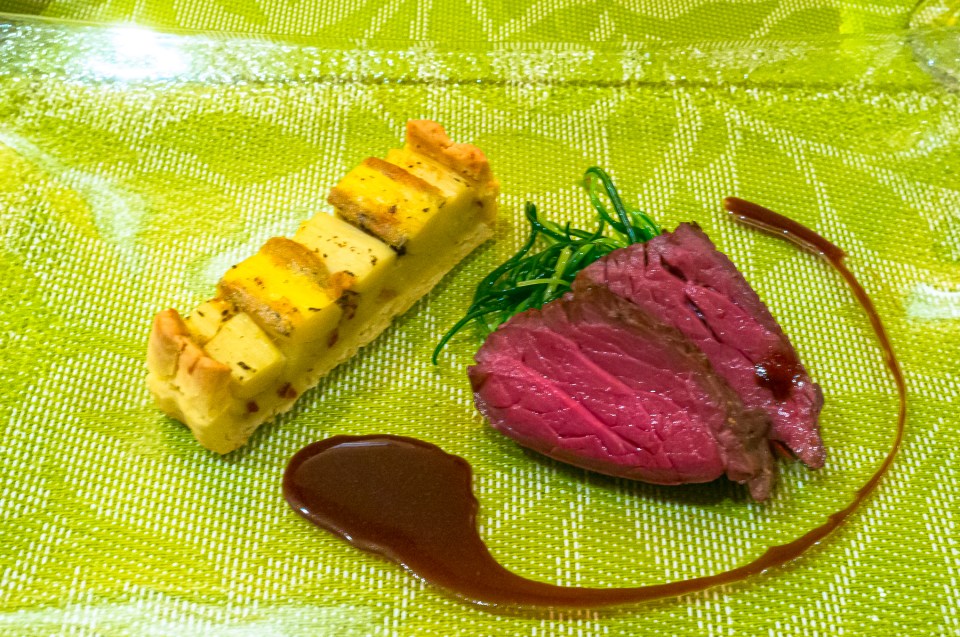 肉料理は,白鷹町の馬肉を使った一皿。
