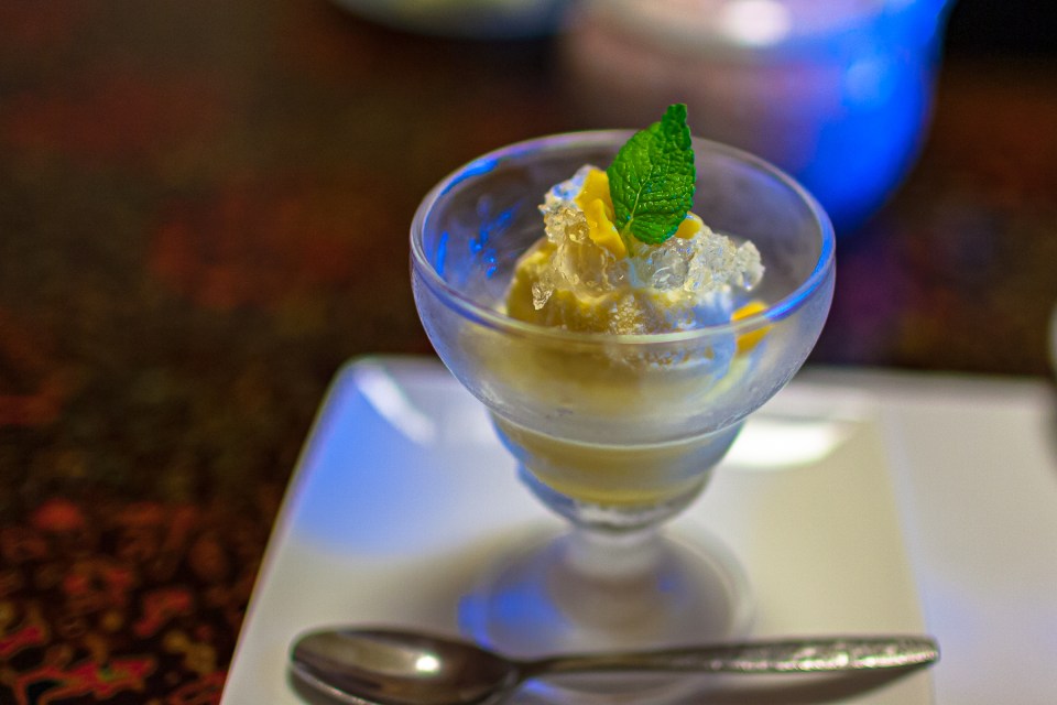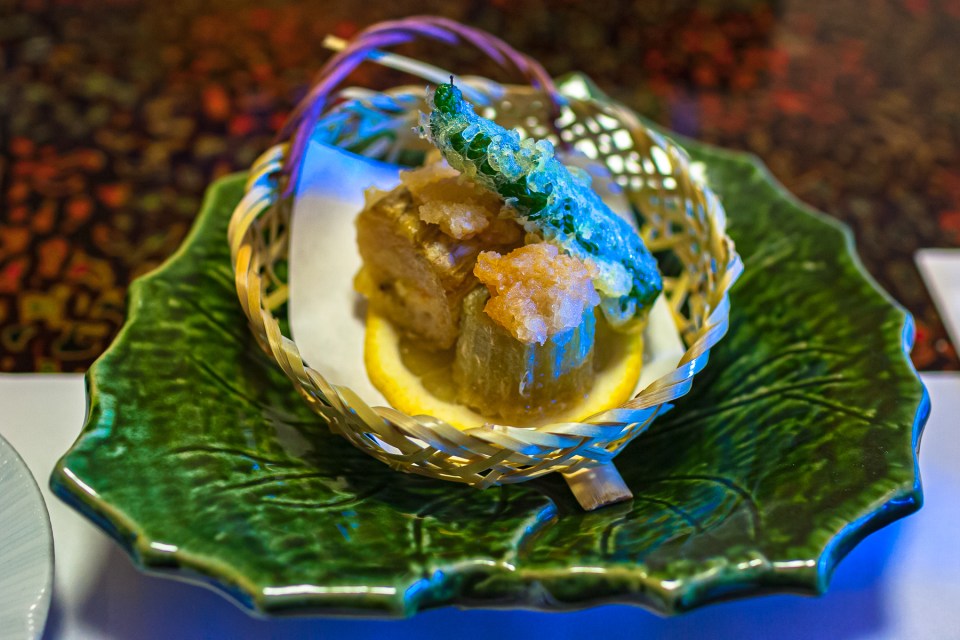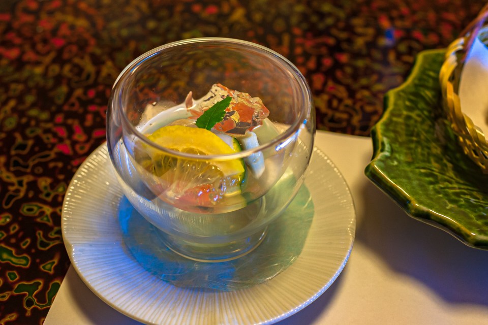 今回,強く印象に残ったのが,この料理。というよりも,このガラスの器。