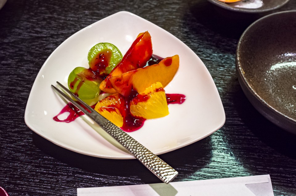 最後に蕎麦餅とフルーツ。