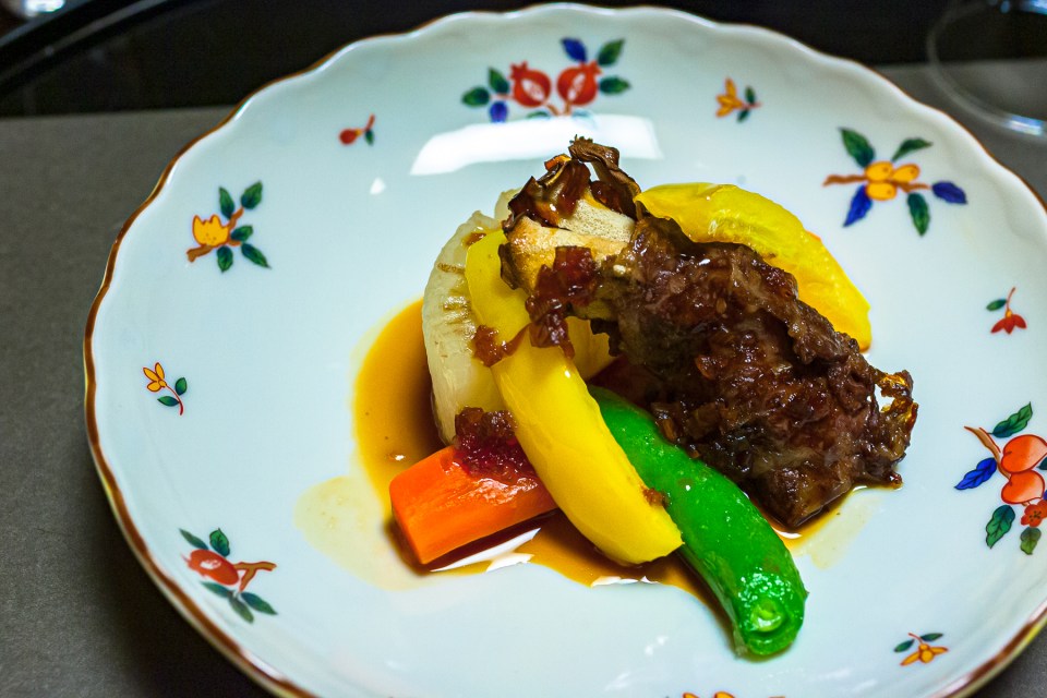 進肴は前沢牛。絡ませたタレがおいしかったですね。