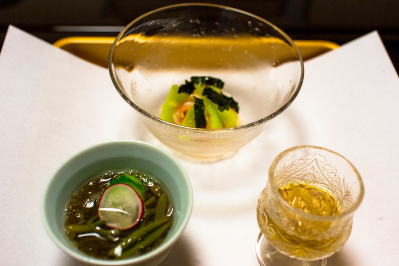 お凌ぎは,茶碗蒸しに冷たいあんを掛けたもの。お出汁が素晴らしいので,こういったものは引き立ちますね。