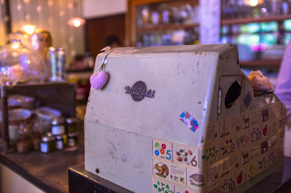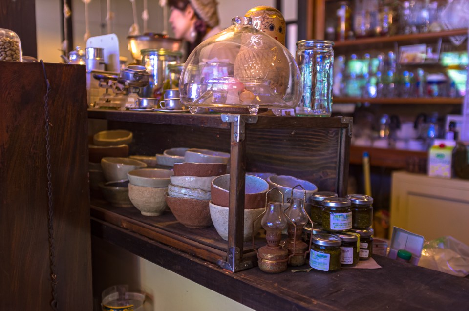 レジのある場所は,カフェの人達が買い付けたもので埋まっています。