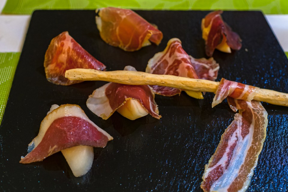 2皿目は,自家製生ハムの盛り合わせ。猪,鴨,蝦夷鹿,舞舞豚等と続きます。