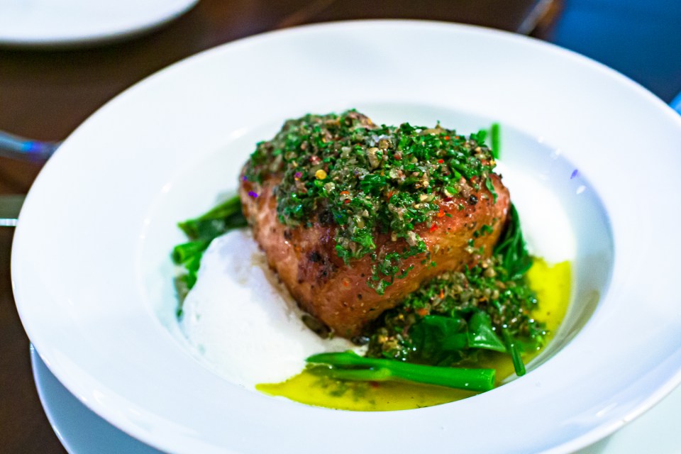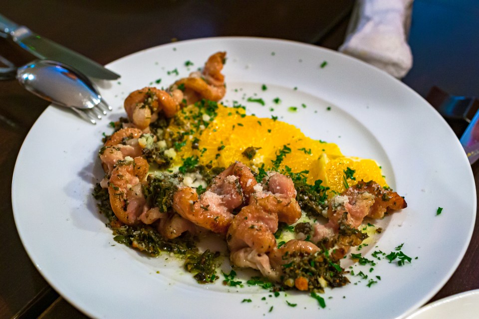 お腹が一杯のところに,止めの豚ほほ肉の香草焼きワインビネガーソース。