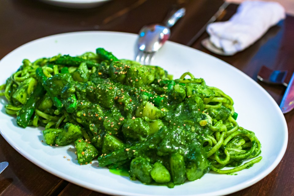 ジェノベーゼのソースもおいしいのですが,驚きはパスタ。