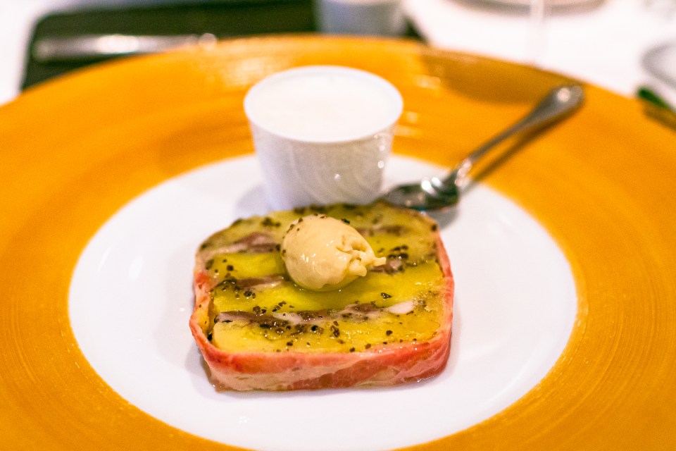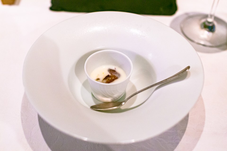 前菜の選択肢の「玉葱のポタージュ,フォアグラソテーを添えて」をちょっとだけ出してくれました。