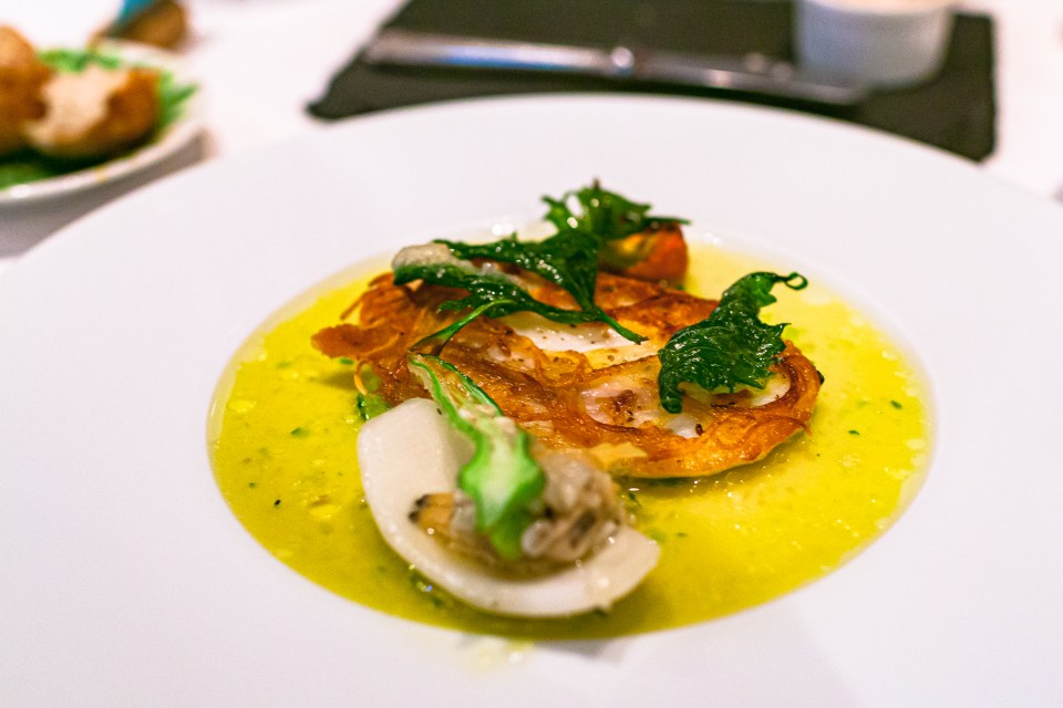 最初のイワシとじゃが芋の重ね焼きトリュフ風味から驚きの連続。