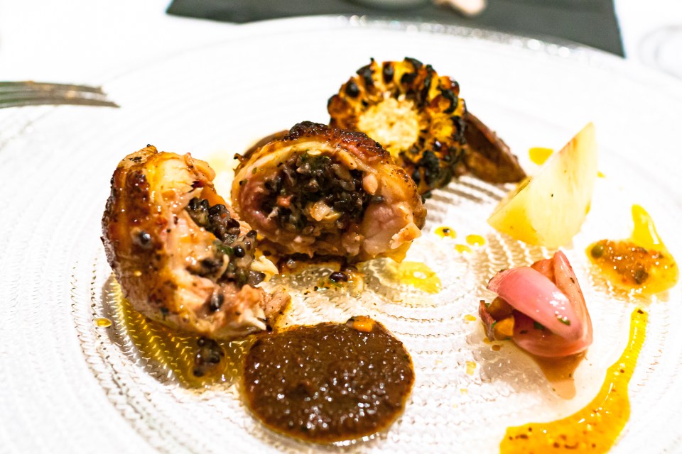 イワシとじゃが芋の重ね焼きトリュフ風味 アンチョビクリームを添えて