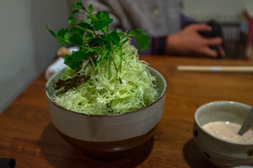 最初にクレソンが乗っかった沢山のキャベツが出されます。