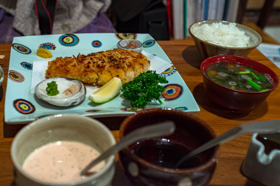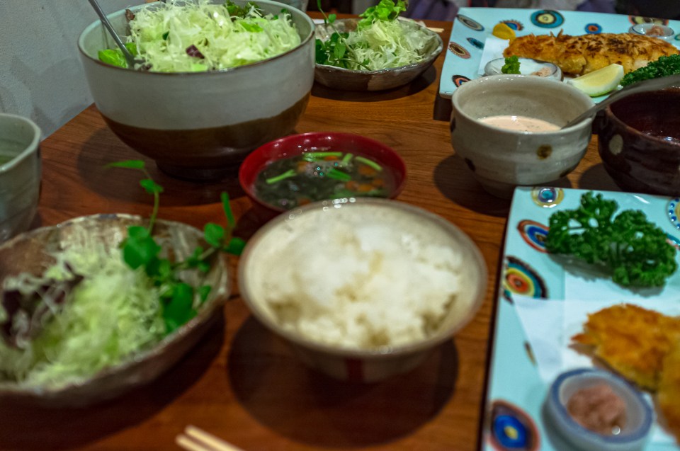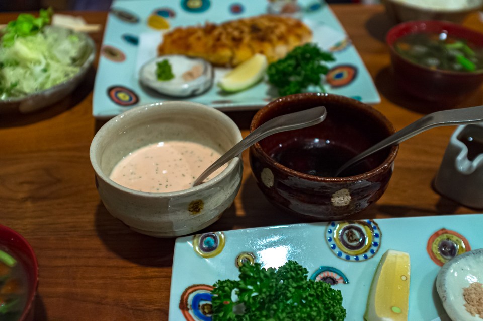 僕はヒレかつです。左下にある沖アミの塩辛を乗せて食べるのが気に入りました。