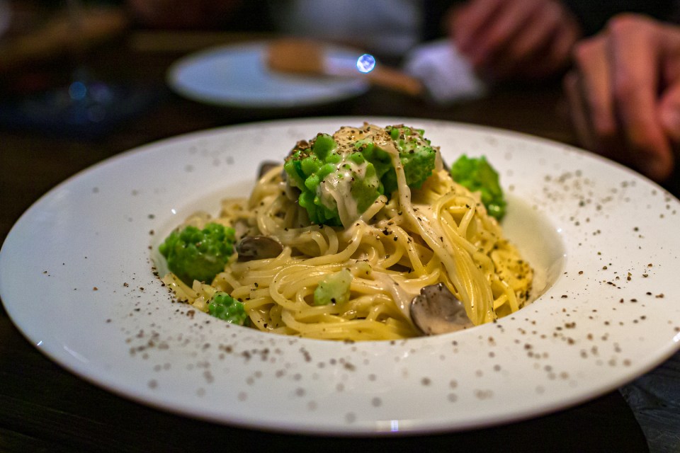 クリームのパスタの上に乗っかっているのはロマネスコ。