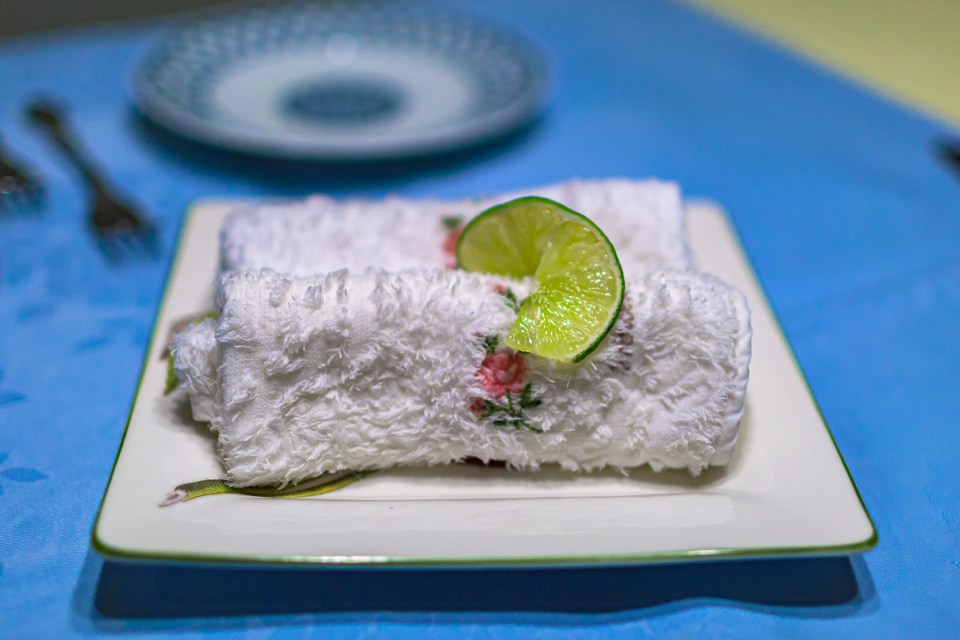 ライムを載せて出されるおしぼり。これが出されるとこのお店に来たことを実感します。