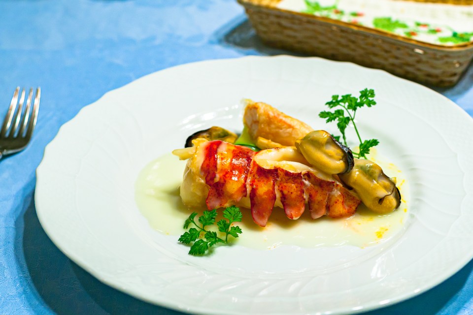 オマール1尾。プリプリのムール貝。そしてズワイ蟹のパイ皮包みが添えてあります。甲殻類を多めにとリクエストしてありました。リクエスト通りの内容です。