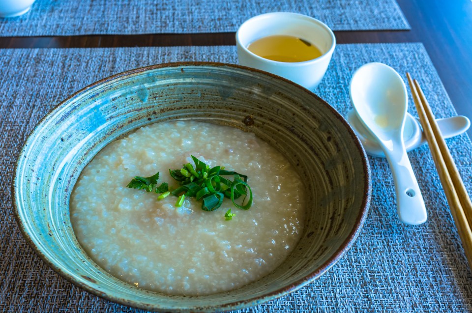 そして丸鶏スープを使った中華粥。これもこのお店のスープの上等さが良く分かります。