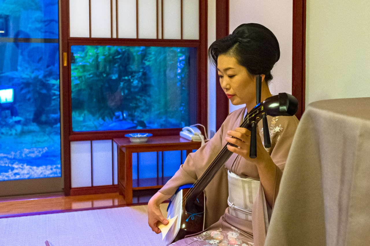地方さんのみゆきさんの三味線と生歌に合わせて舞ってくれます。