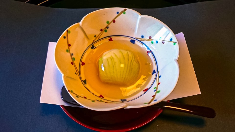 夏といえば鱧。ありがちな丁寧に骨切りし湯びいたのではなく,お椀に仕立てたのが秀逸。