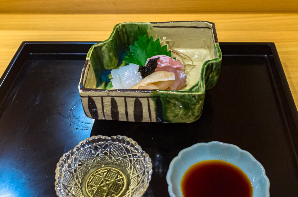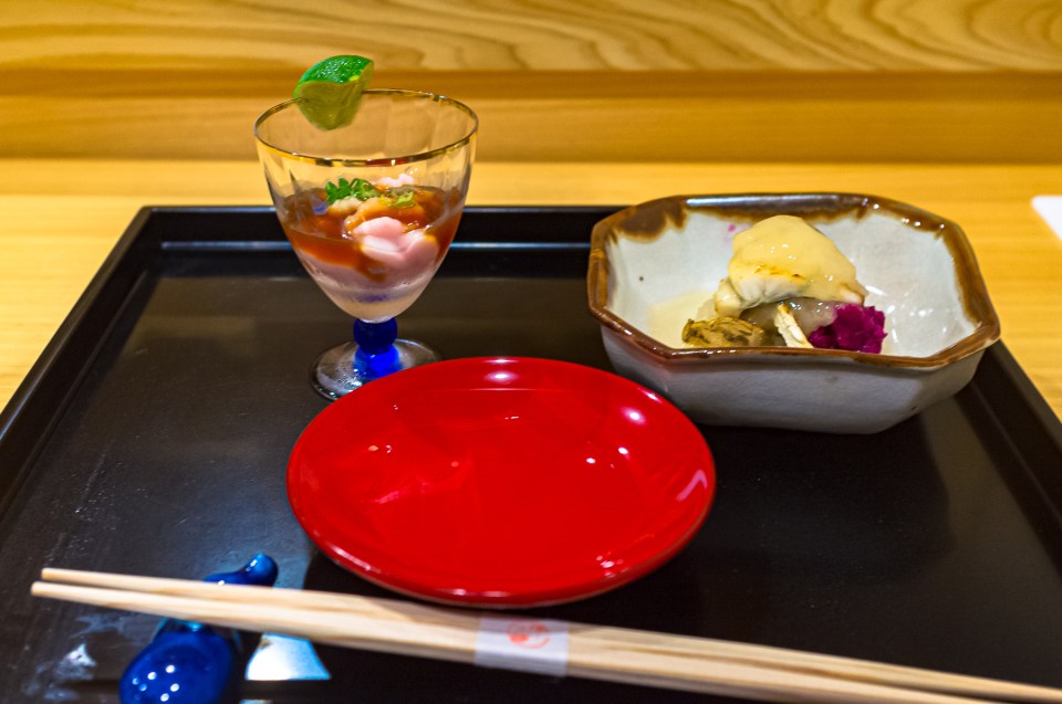 向付です。下ごしらえを終えている食材をカウンターの前で仕上げてくれます。