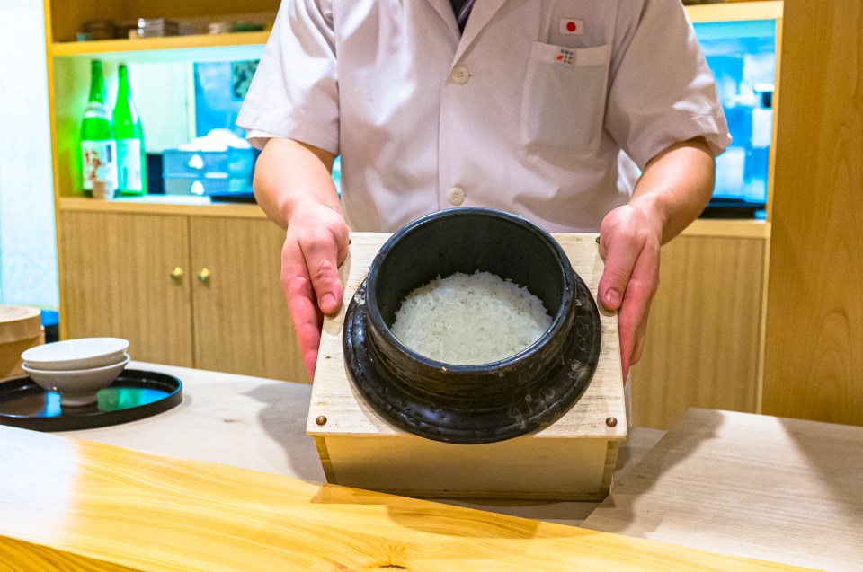 お釜で炊いたごはん。2杯目からはおこげがついてきます。