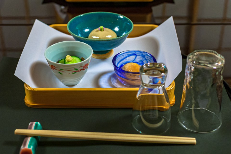 お馴染みの胡麻豆腐から始まる先付け。けど,なんか一品足りない感じ。
