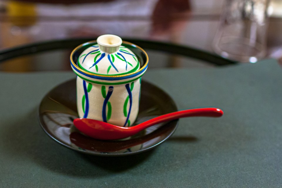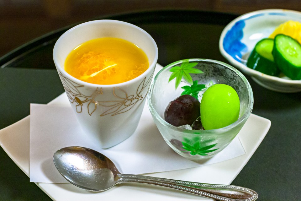 水菓子はオレンジのゼリー。期待してスプーンで掬ったのですが,ゼラチンが多かったのでしょうか。ちょっと固まり感が強く,舌触りがよくなかったです。これは,落第ですね。