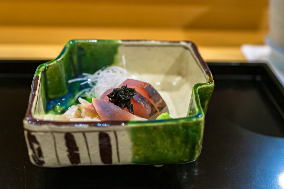 最初はイナダ,そして北寄貝。そして味付けとして海苔が載っています。これがとてもよいアクセントになっています。