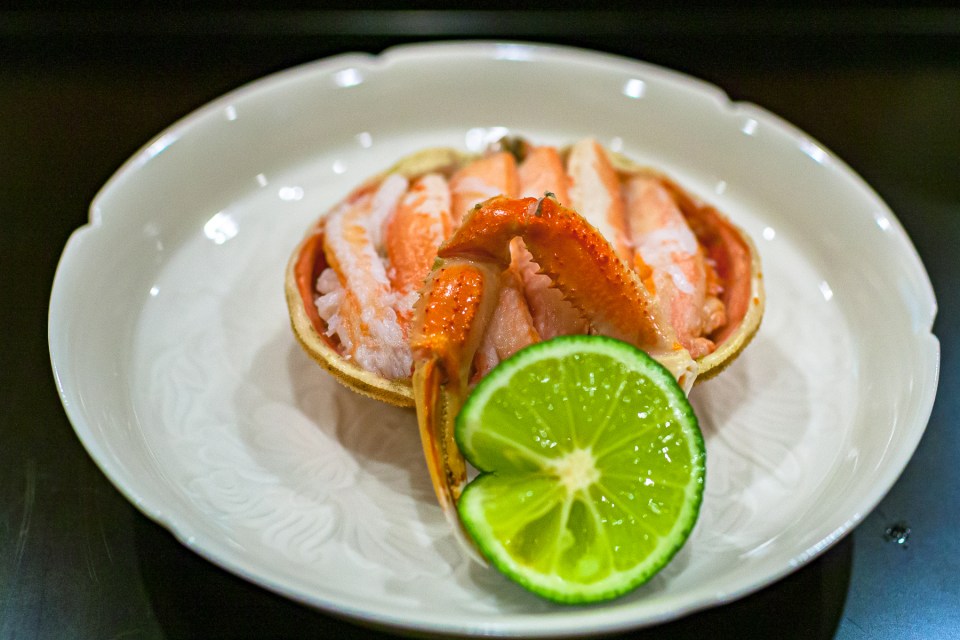 向う付け3皿めはせこ蟹。松葉蟹の雌です。
