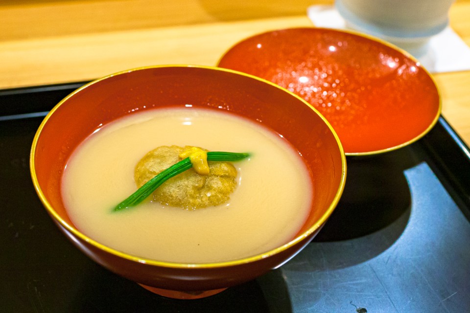 お椀は白味噌仕立て。これまで,これだけおいしい白味噌仕立てののお椀は初めてです。