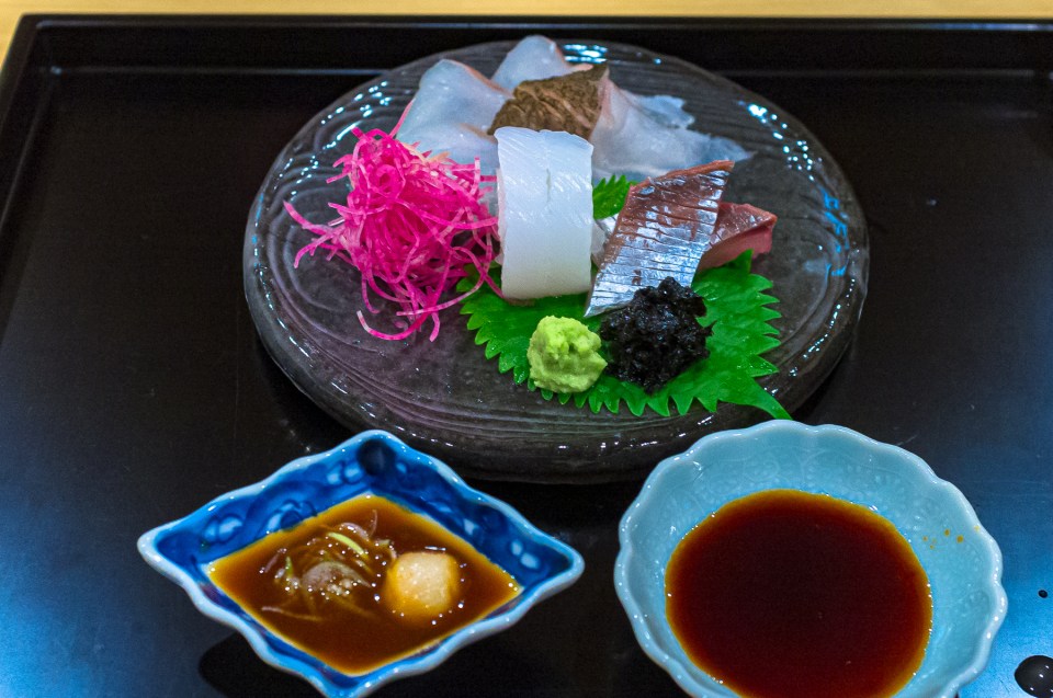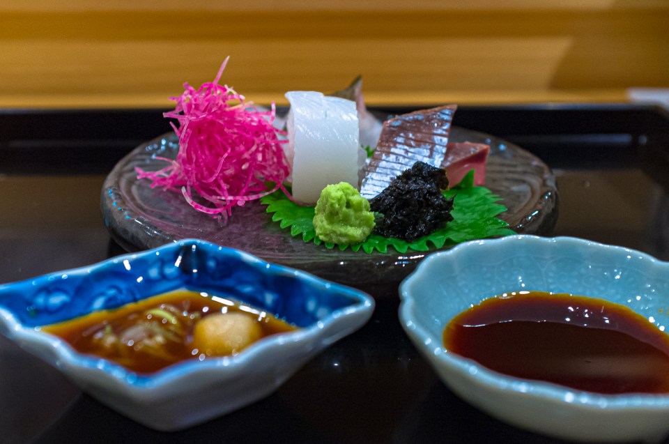 向う付けは平目,平目の縁側,庄内浜のあおり烏賊,そして真鯵です。