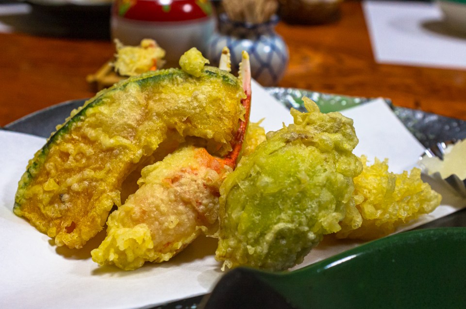 いつ揚げたか分からない,冷め切った硬い天麩羅。その上に,上手く揚がってないため,衣のべちゃべちゃ感が残っています。