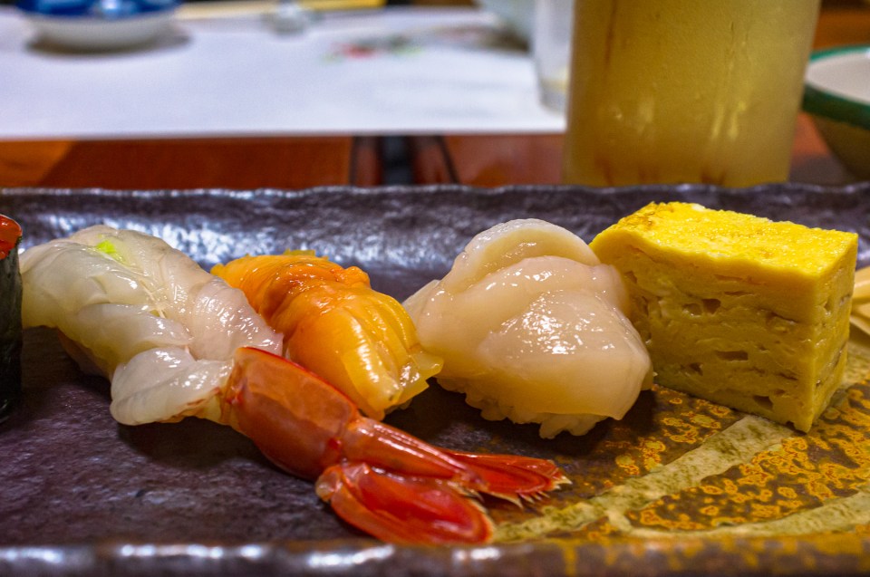 そしてお鮨です。8貫に卵焼き。ネタの顔ぶれとしては良さそうなものが並んでいます。