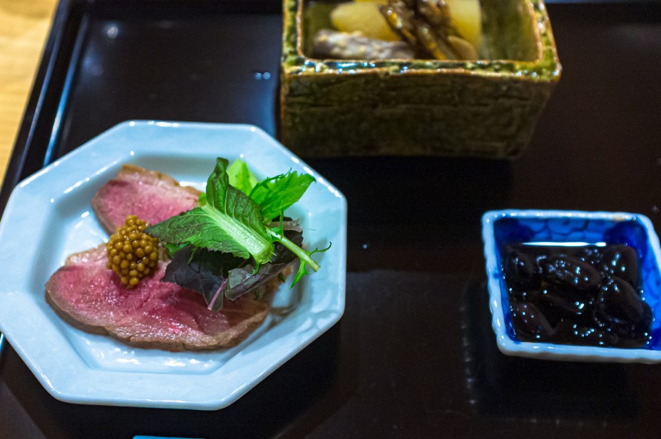 鴨の焼き物はおせちでお目にかかれるとは思ってもいませんでした。赤みの部分を少し残しながら上手に焼き上げています