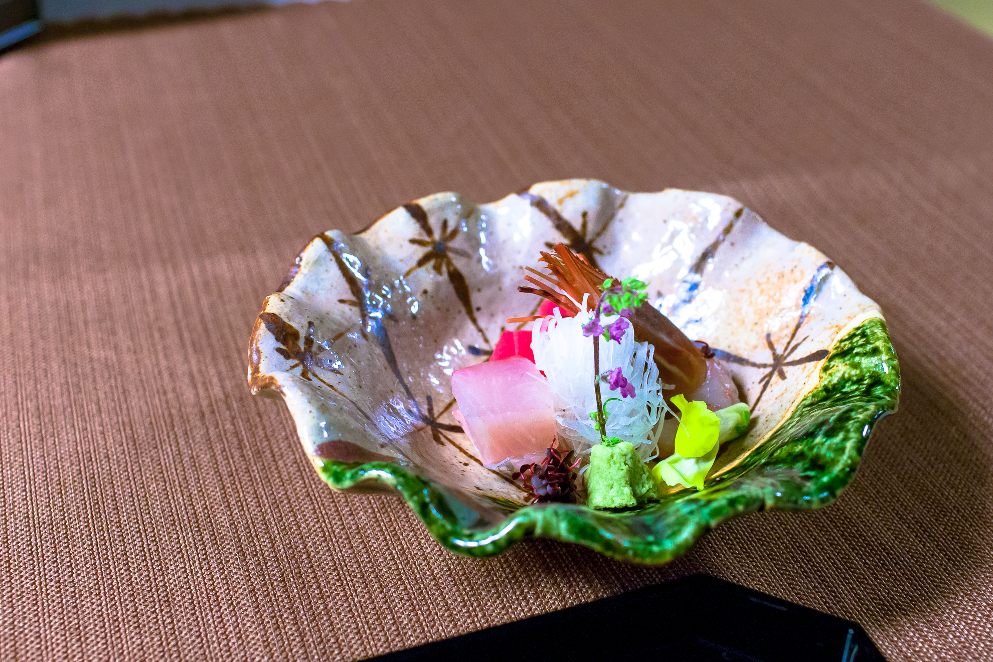 向付は鮪やハマチなど。おなじみの仕上げです。