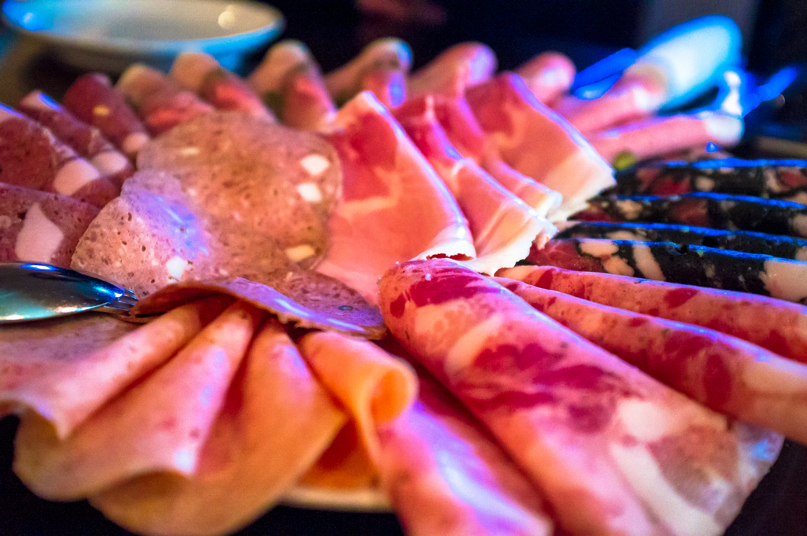 スライサーを導入してから、よりきれいなドレープを描いてくれるようになったハムの盛り合わせ。