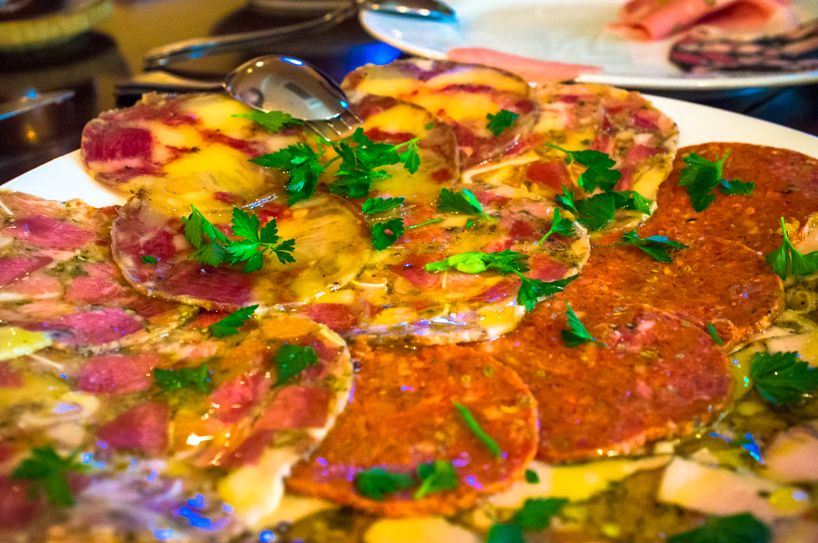 カルパッチョ風とお店の人が言っていた、寄せ合わせハムの盛り合わせ。