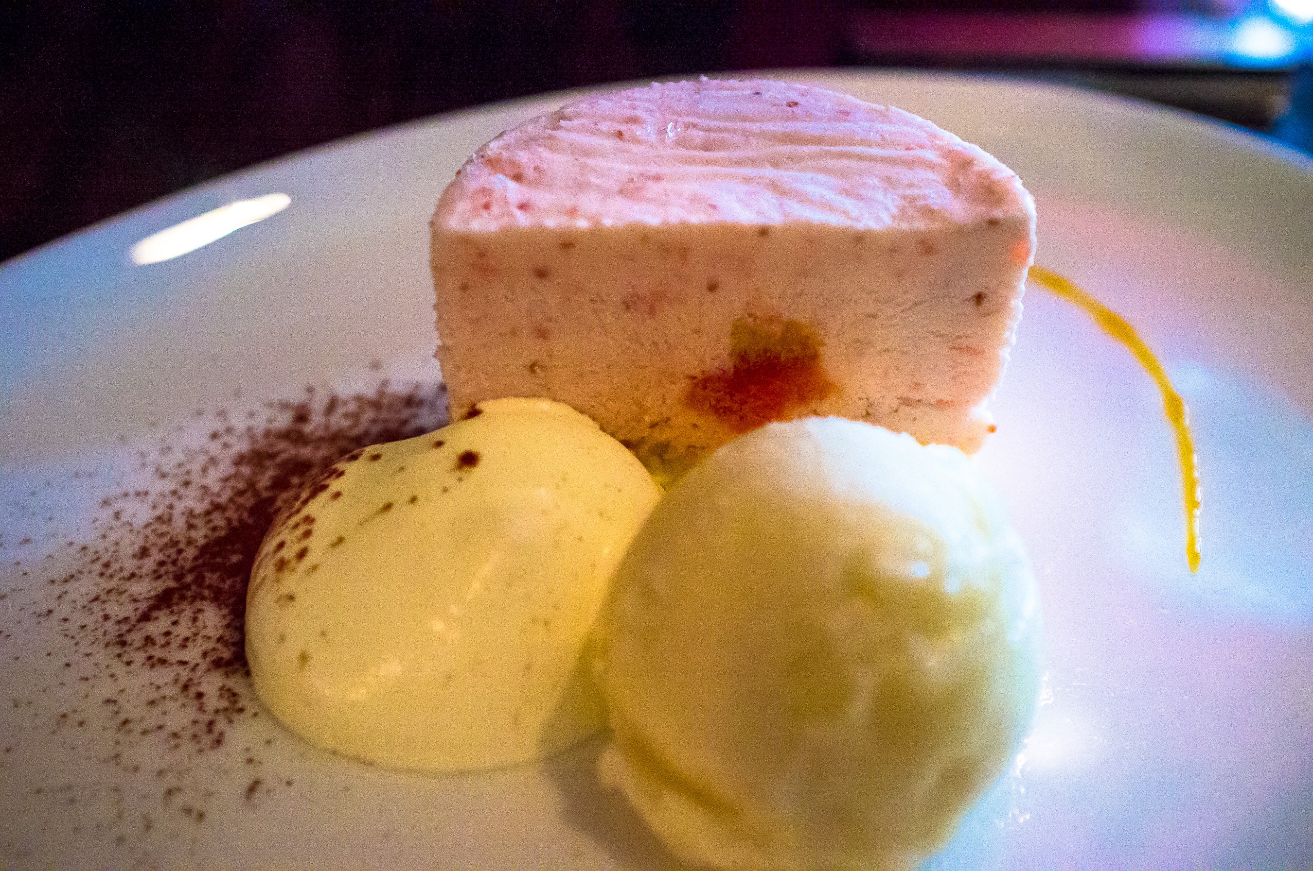 ドルチェはイチゴのフレジェ、生クリーム添え。そして、レモンのジェラートとラフランスのジェラートのどちらか。